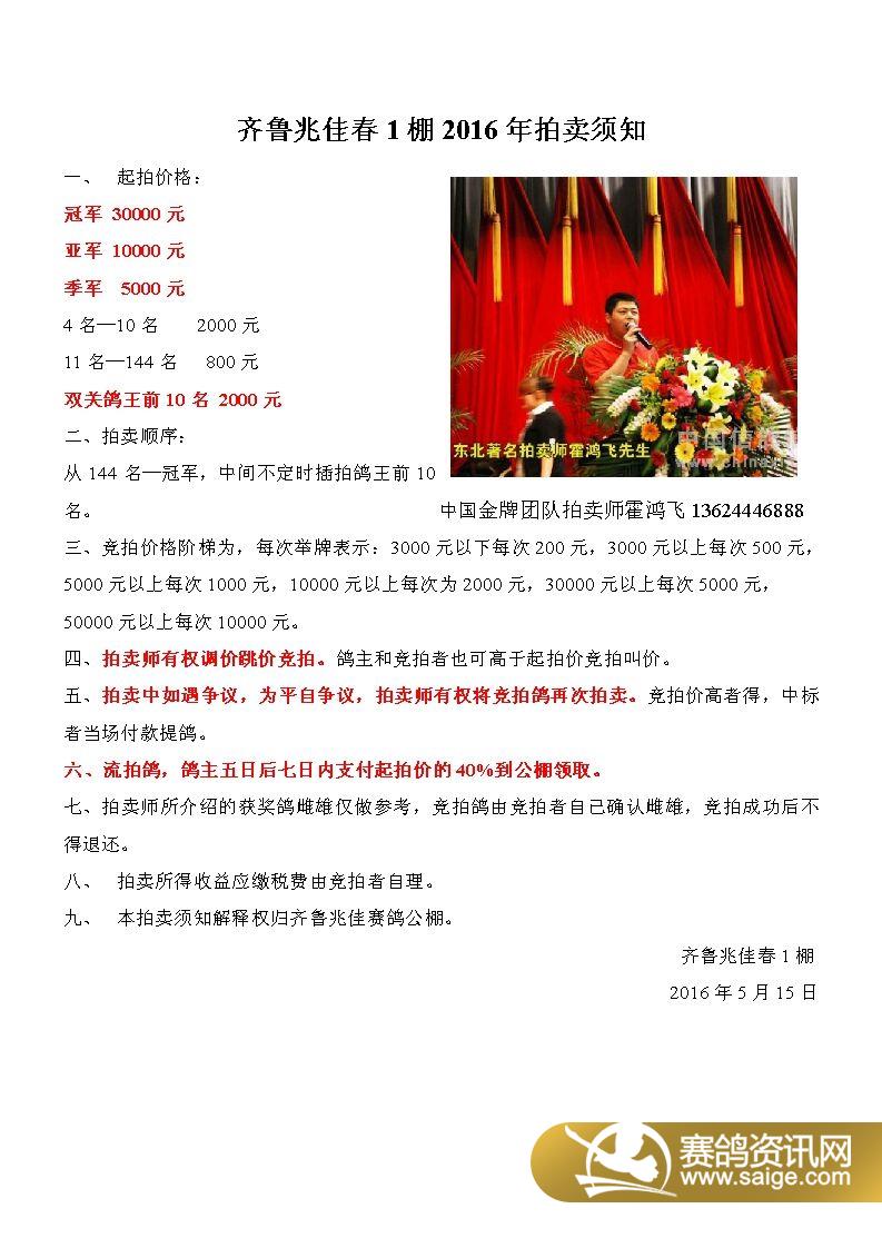 2016年齐鲁兆佳春1棚拍卖须知