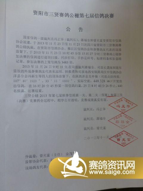 三贤公棚2013决赛开笼通知