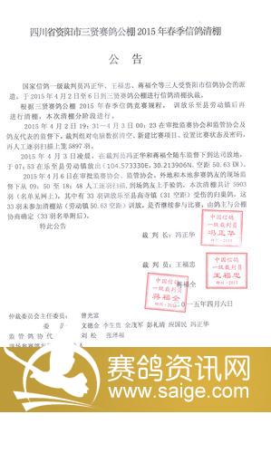 三贤2015年清棚公告