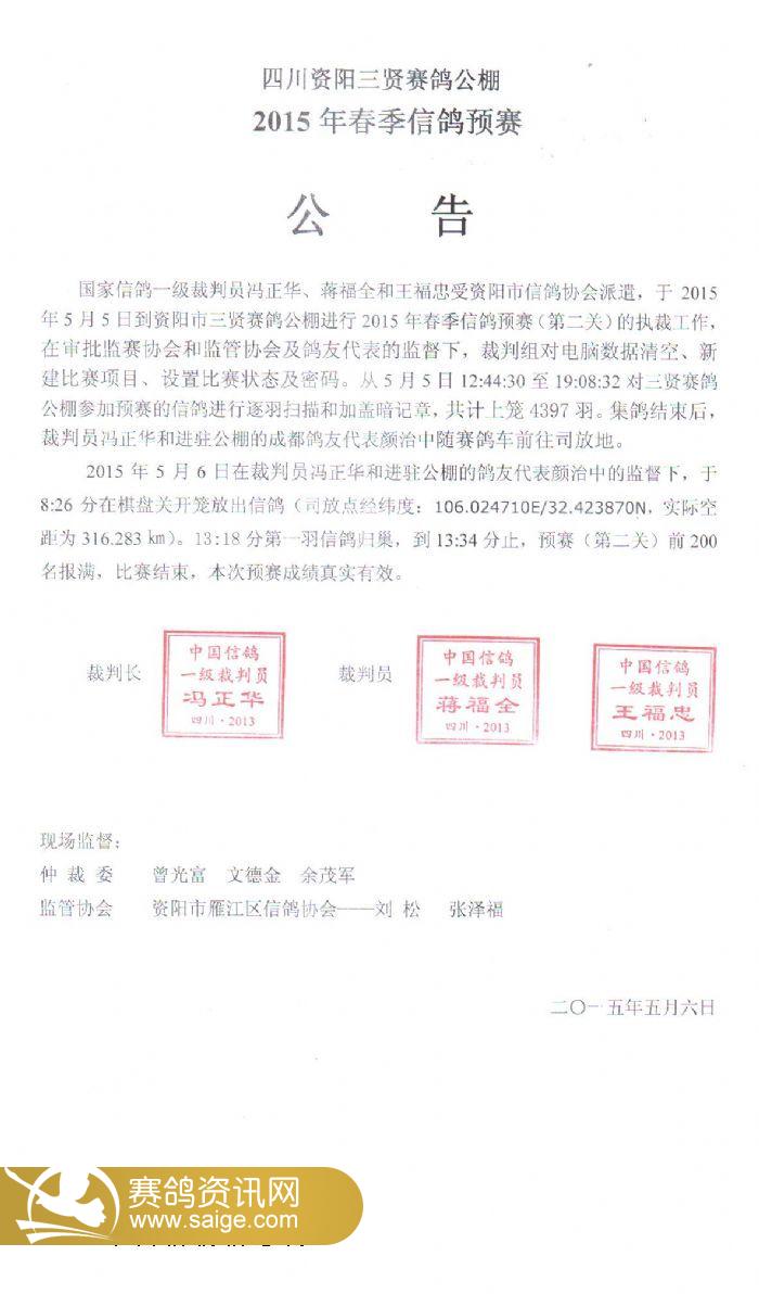 三贤公棚2015年预赛公告