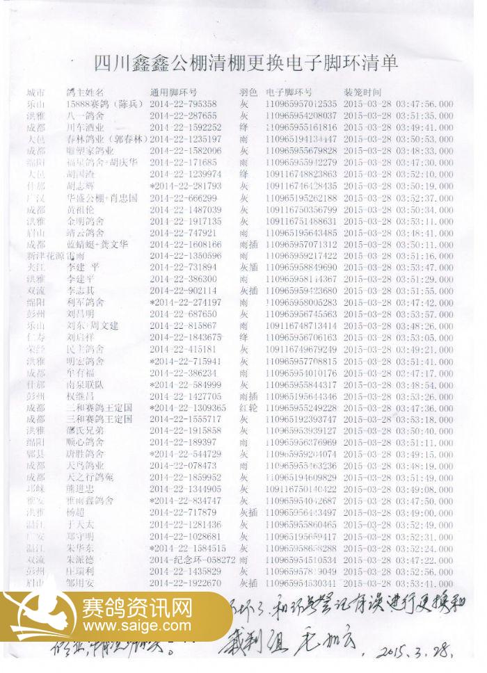 四川鑫鑫公棚清棚更换电子脚环清单