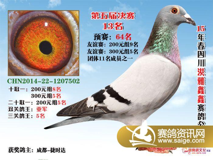 鑫鑫赛鸽春棚15年获奖鸽双关鸽王前5名