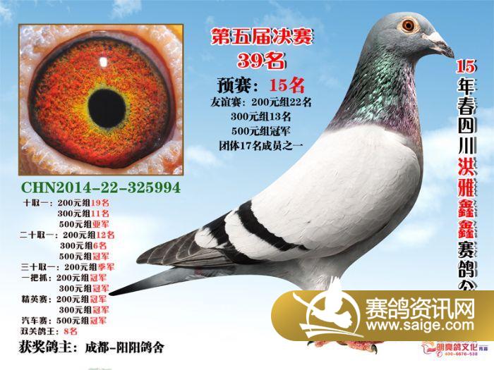 鑫鑫赛鸽春棚15年获奖鸽前5名