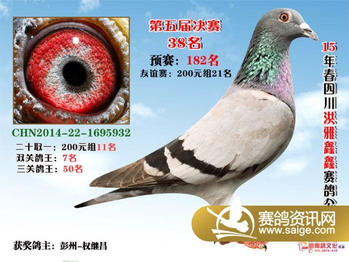 鑫鑫赛鸽春棚15年获奖鸽双关鸽王前5名