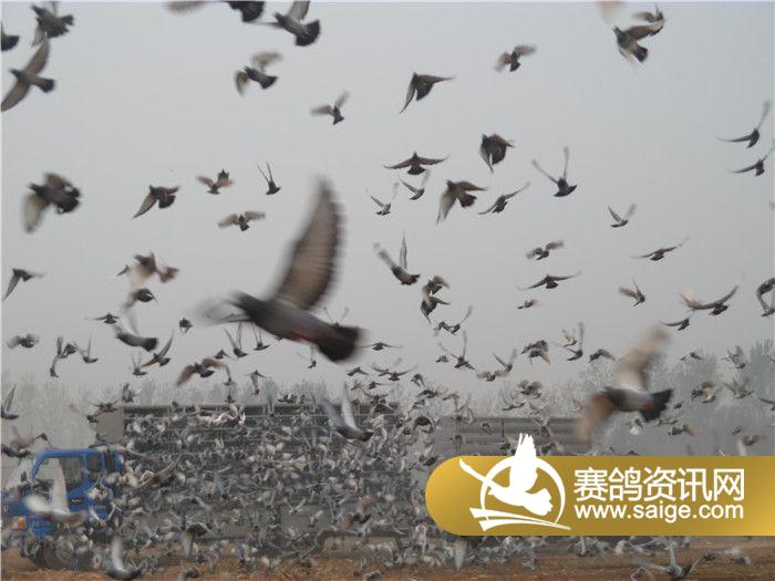山东龙畅赛鸽中心第九站五十公里训放开笼图片