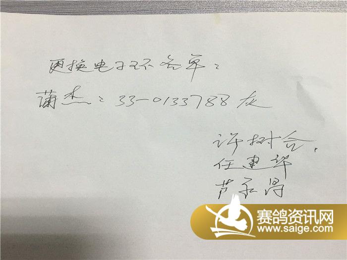 山东龙畅赛鸽中心280公里预赛上笼更换电子环人员名单