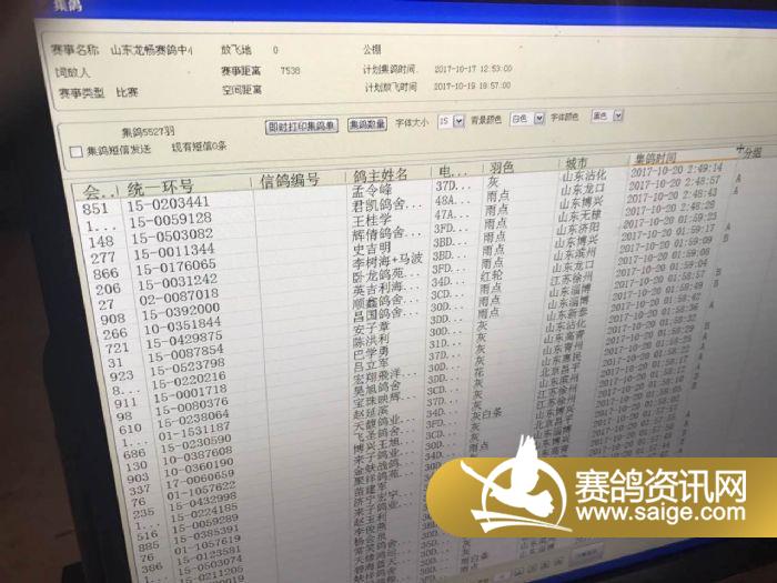 山东龙畅赛鸽中心30公里训放当日归巢数据(按会员号不排除漏