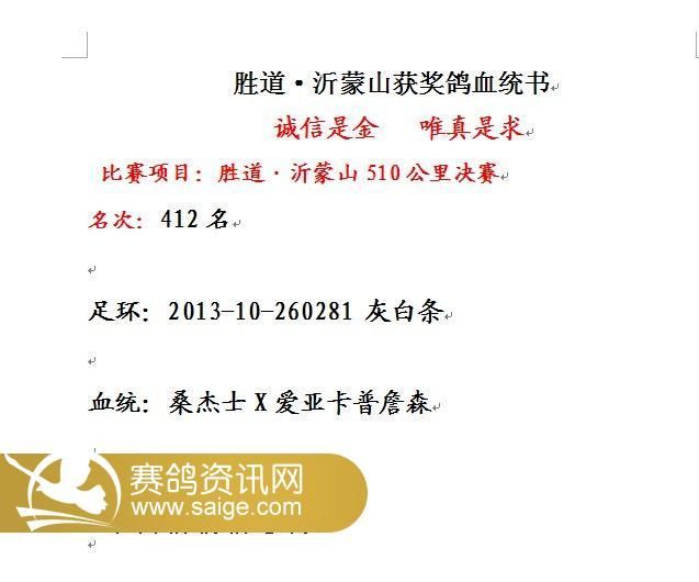 胜道·沂蒙山401-500名获奖鸽风采照