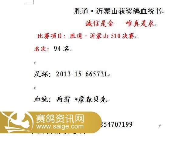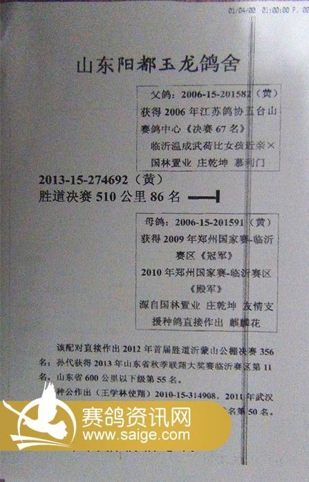 胜道·沂蒙山401-500名获奖鸽风采照