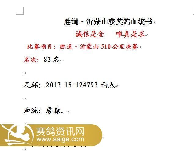 免责声明:本网凡是由用户发布的文字、图片、音视频等资料,其真实性、准确性和合法性由信息发布人自行承担,并负法律责任。赛鸽资讯网不提供任何保证,并不承担任何法律责任。
