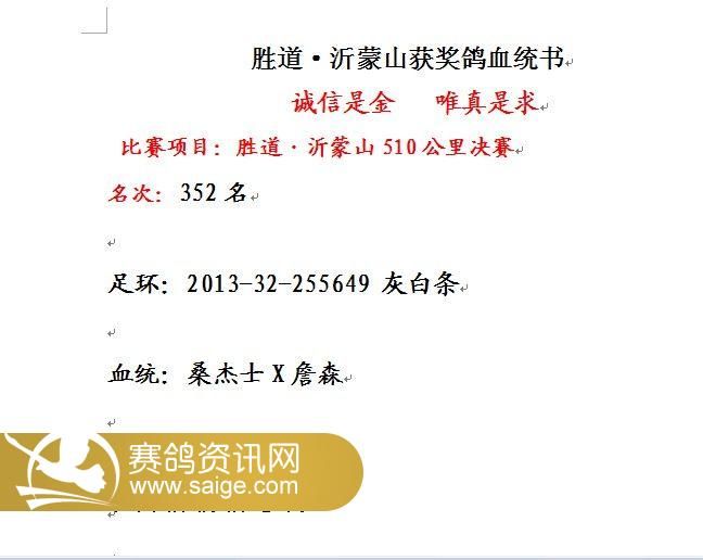 胜道·沂蒙山301-400名获奖鸽风采照