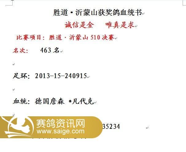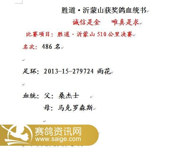 胜道·沂蒙山401-500名获奖鸽风采照