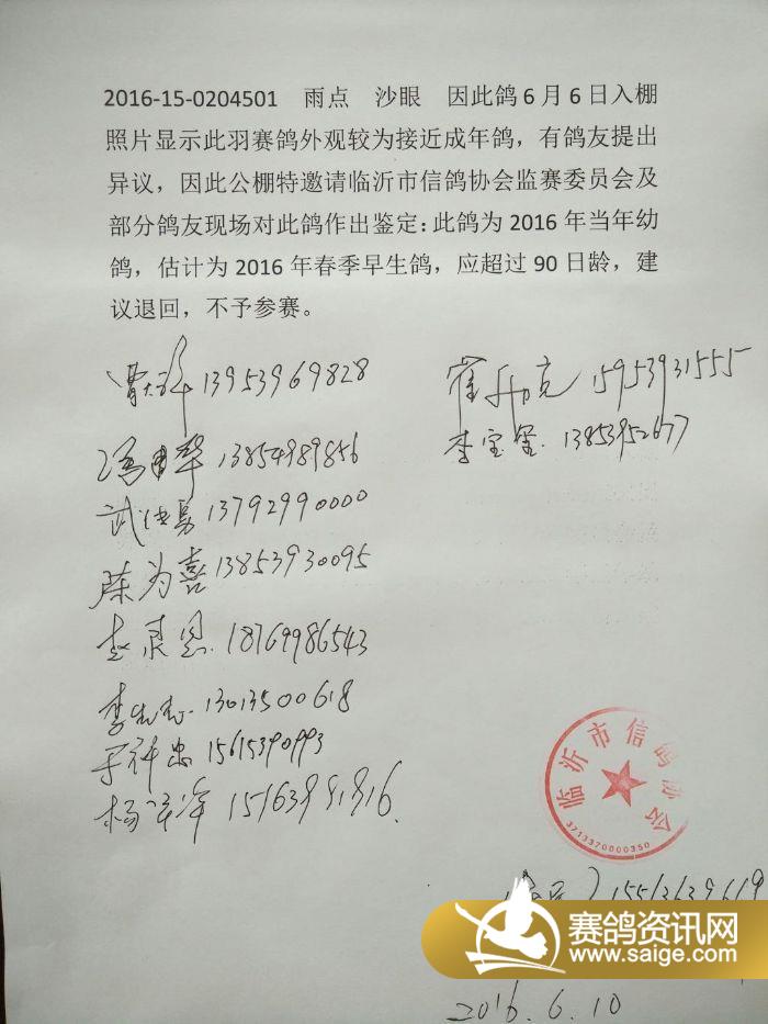 赛鸽入棚照片(6月7日)一