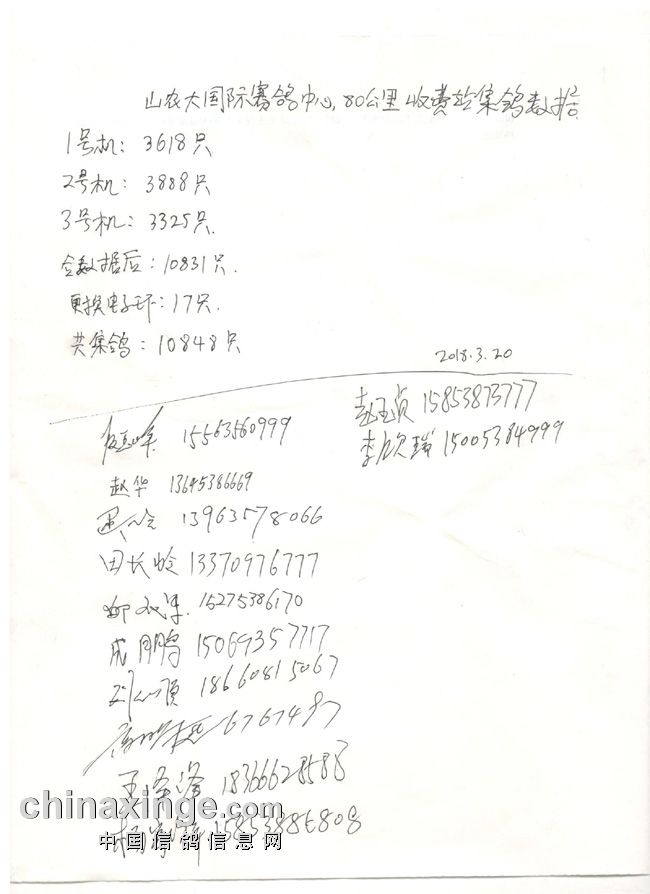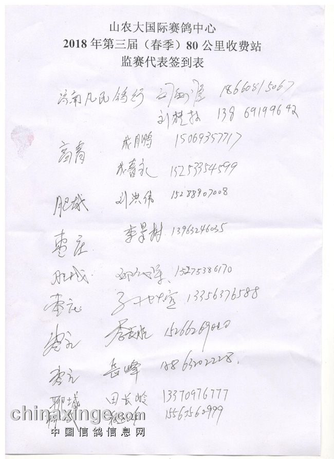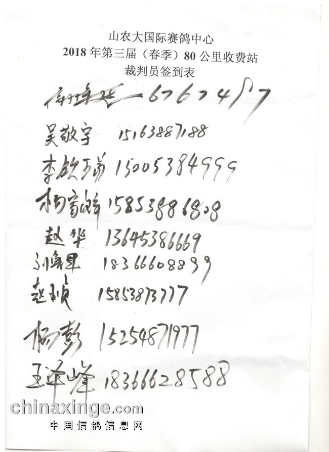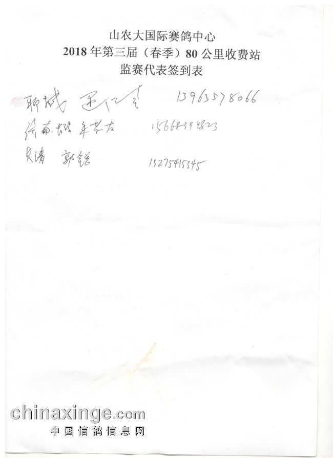 山农大国际赛鸽中心80公里收费站集鸽清单(按顺序)