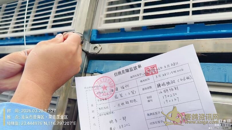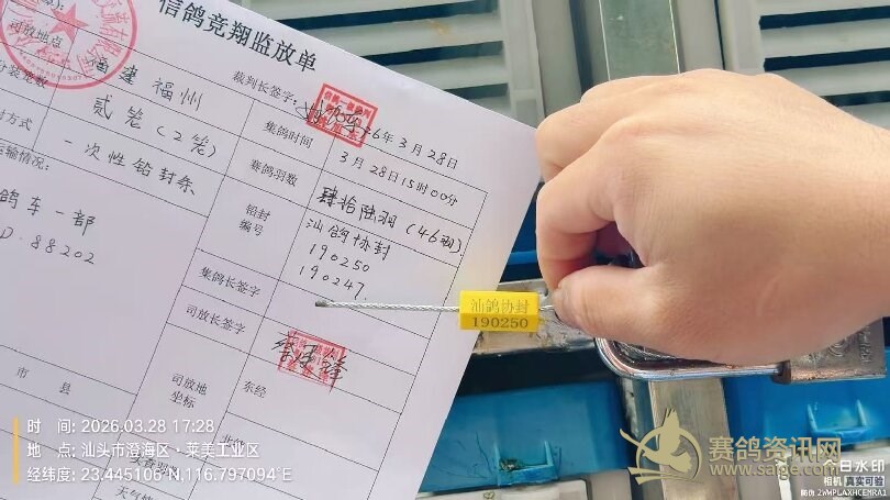 及确认第一羽参赛鸽集鸽上笼