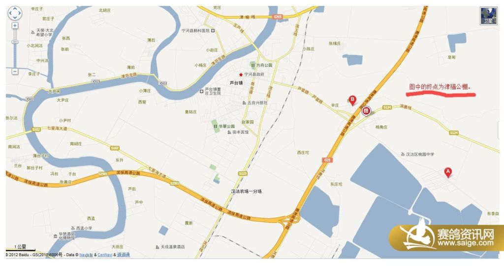 (2) 天津的鸽友可以走津汉公路(经东丽湖)、津芦南线(经大毕庄)。或直接走津宁高速(金钟河大街经民权门)。