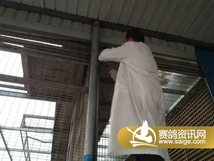 喂食结束,驻场鸽友为鸽棚重新上锁