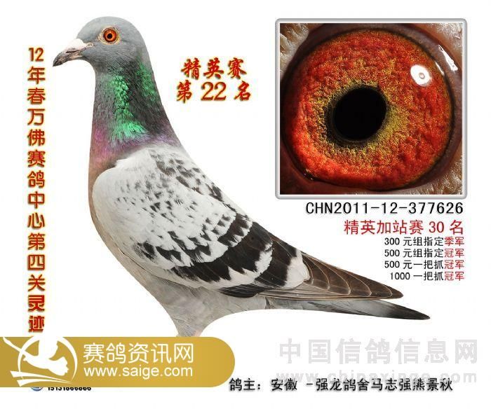 安徽万佛赛鸽中心第四关“灵迹杯”精英加强赛指定鸽成绩)