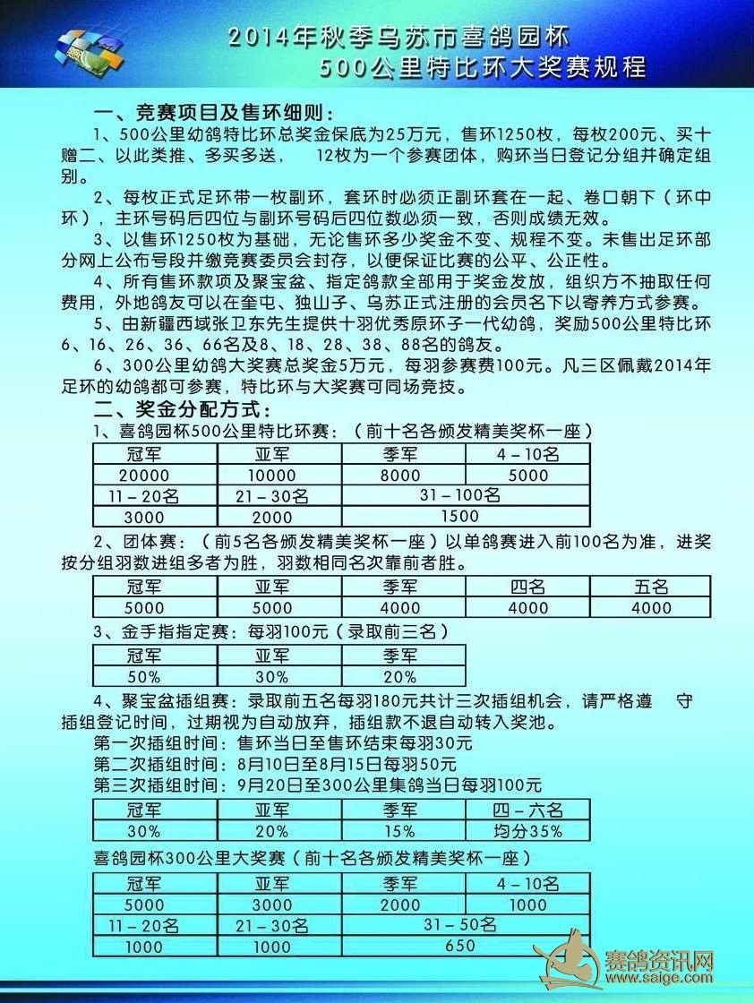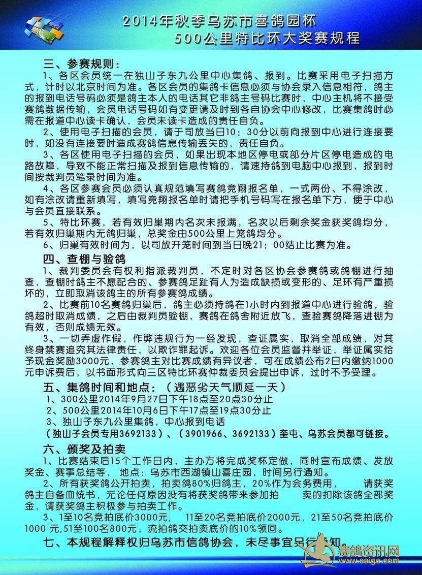 2014年秋季喜鸽园杯500公里特比环大奖赛规程(彩版)