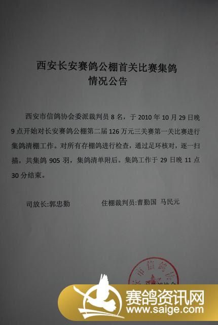 陕西西安长安公棚第一关200KM指定鸽赛设置与奖金分配实施细则