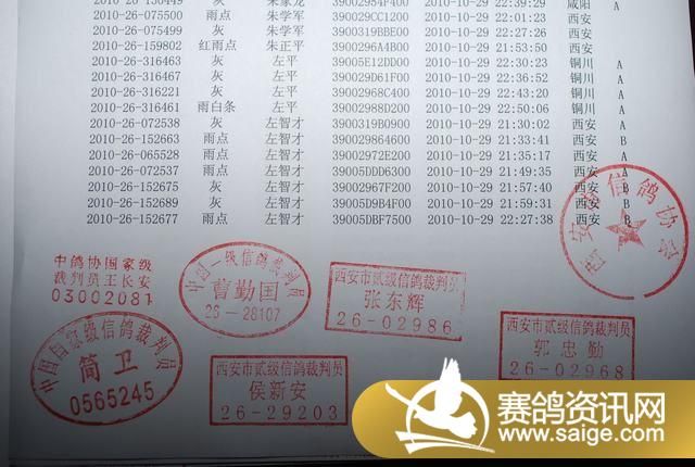 陕西西安长安公棚200KM比赛归巢清单(截止11:50)