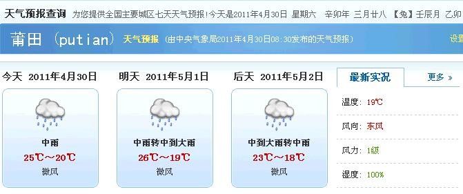 2011年4月18---19日莆田,泉州,同安天气预报