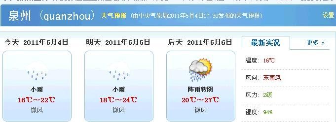 2011年5月4—6日温州。连江。莆田。泉州。同安天气