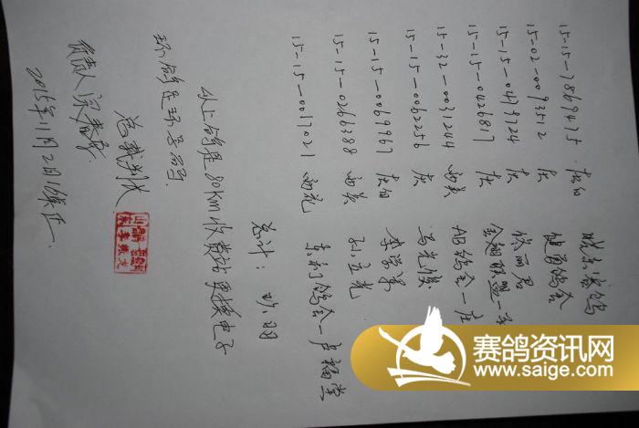 山东枭宇赛鸽中心80公里收费站上笼扫描图集