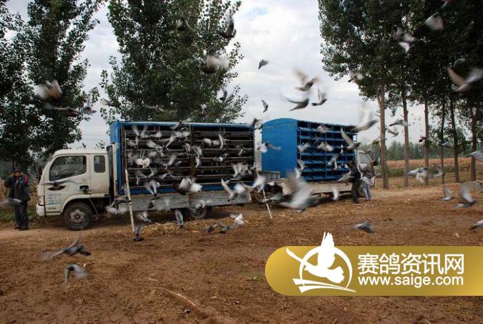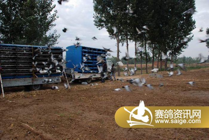 山东枭宇赛鸽中心零公里站笼训放图