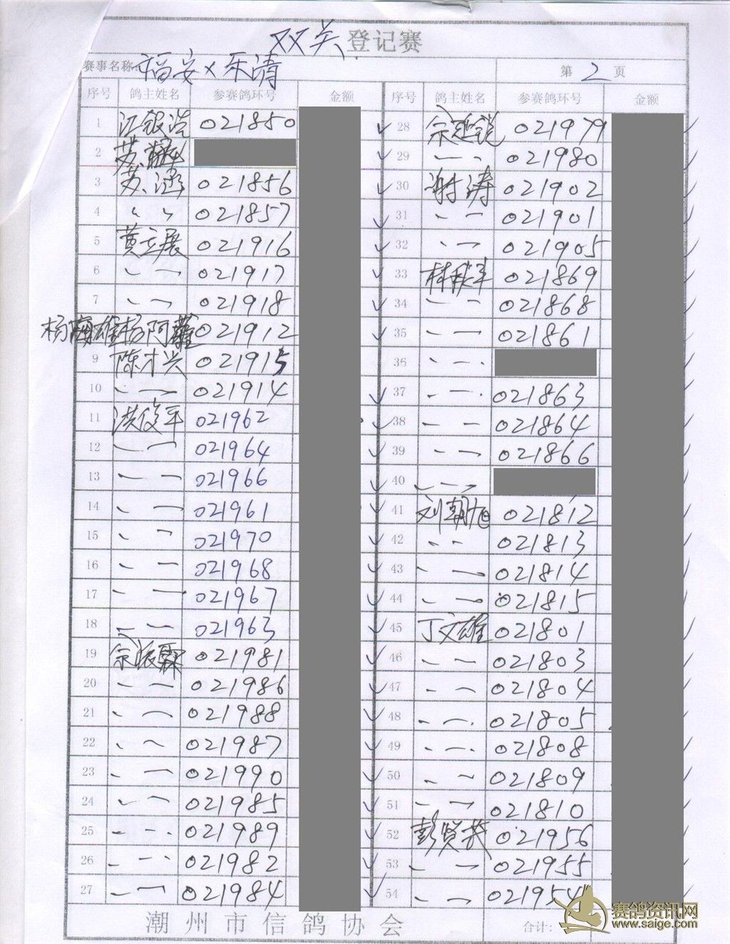 2012秋季福安乐清双关综合存鸽清单(滚筒福清站)