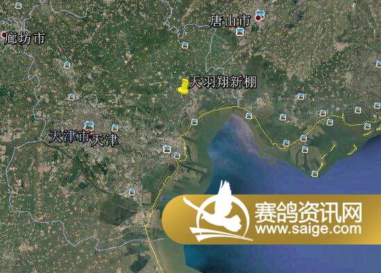 天羽翔公棚,坐落在天津市东北方临渤海的位置。南面和东面全是海岸环绕。西面是绵延的太行山脉,一直伴随着赛线到秦皇岛。如下图所示: