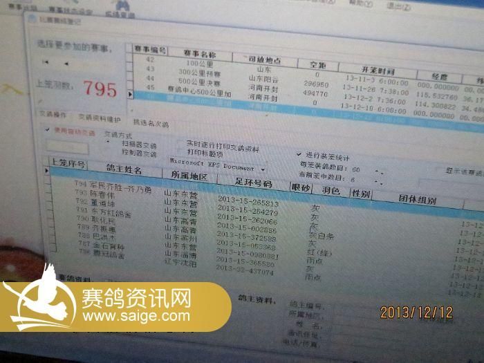 山东鑫众赛鸽中心500公里加强赛上笼清单(按顺序)