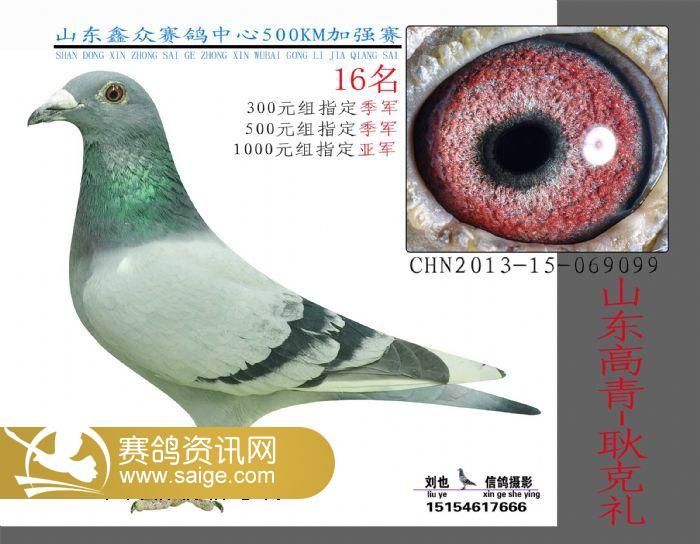 山东鑫众赛鸽中心500公里加战赛指定鸽获奖名单
