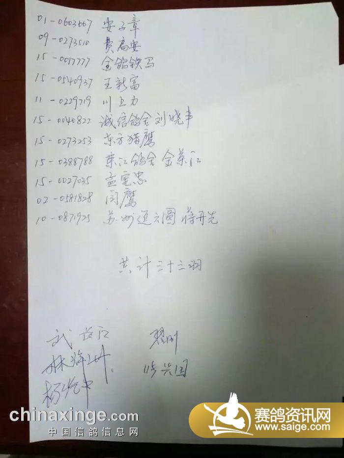 山东鑫众赛鸽中心100公里电子环更换名单