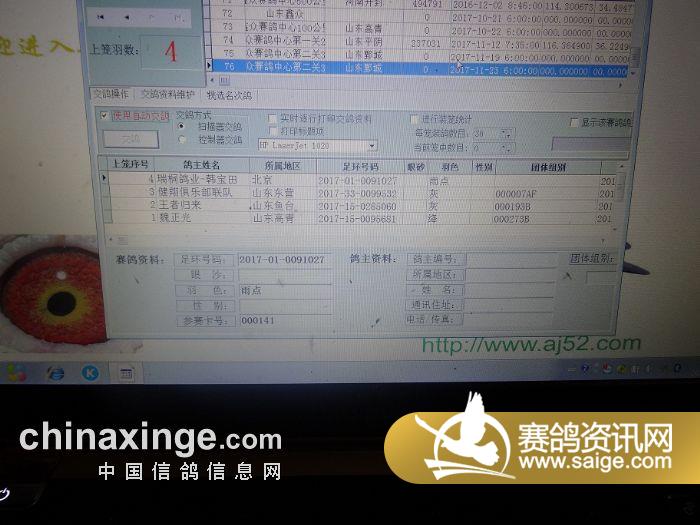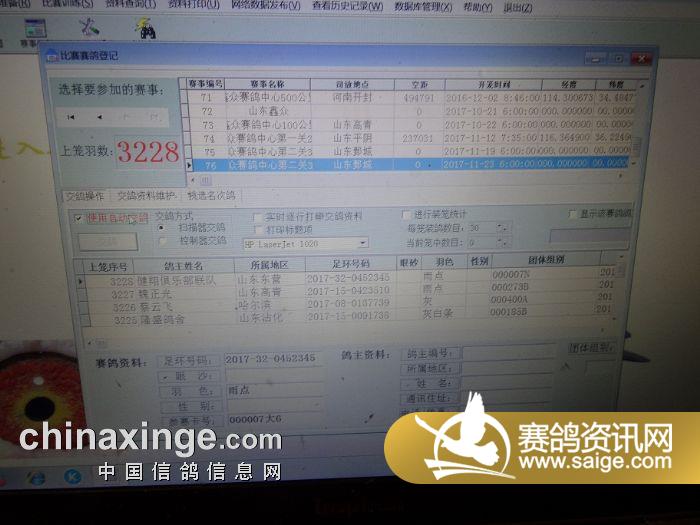 山东鑫众赛鸽中心第二关360公里上笼清单《按鸽主》