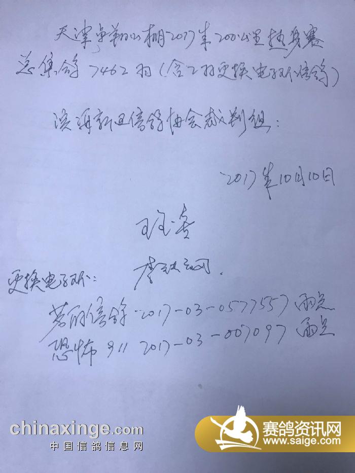 天津卓翔公棚200公里赛事电子环更换名单