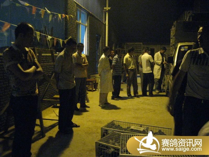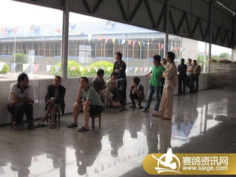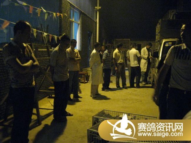 鸽友到现场观看赛鸽归巢