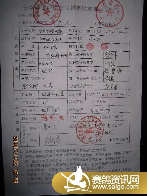 玉溪汇龙公棚决赛归巢清单(按序号)