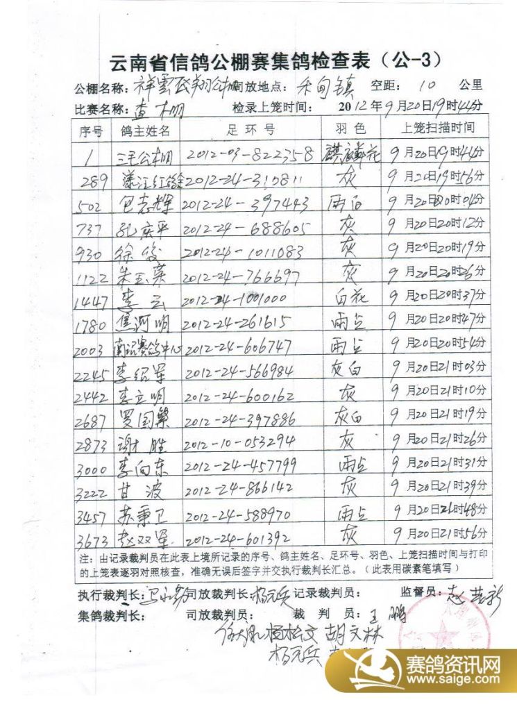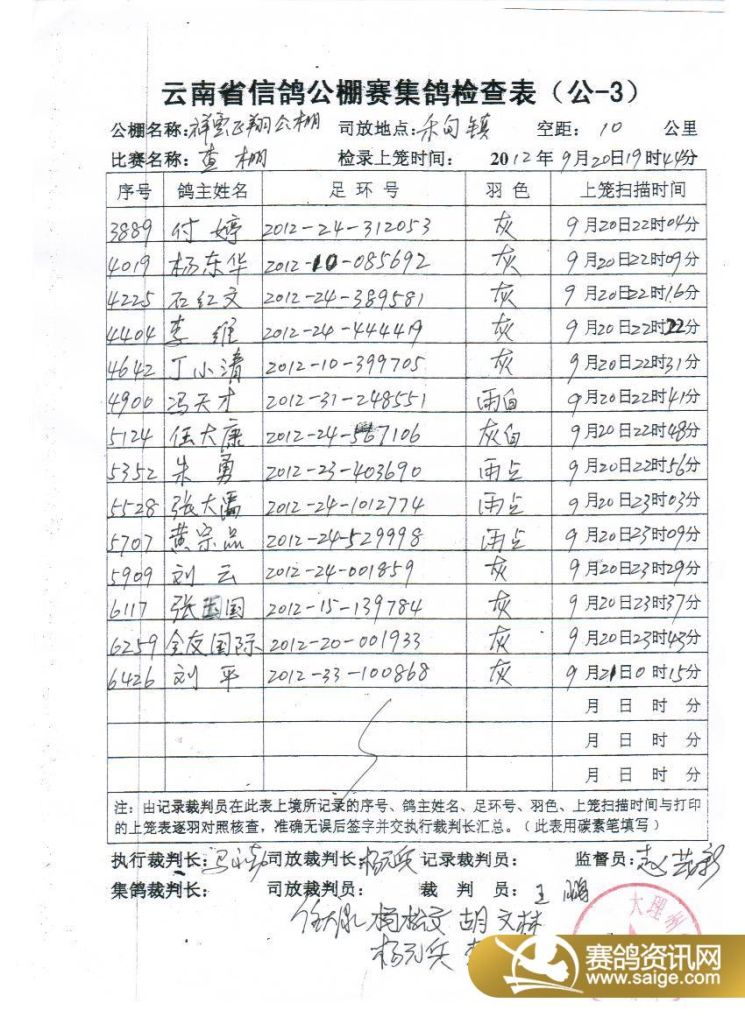 上笼未扫描归巢鸽公示