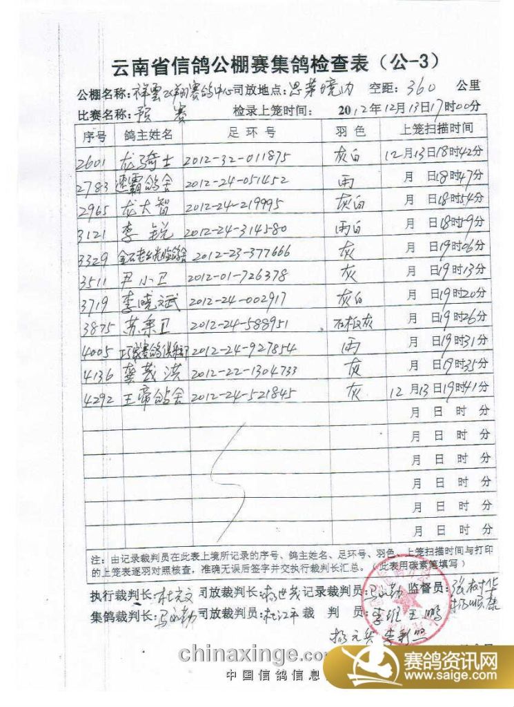 预赛指定鸽奖金分配(公示两天无异有效)