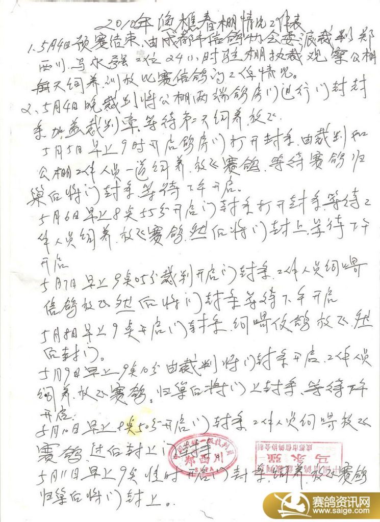 渔樵赛鸽中心2010年春赛(决赛)上笼鸽图片一