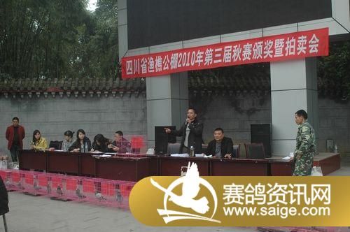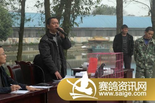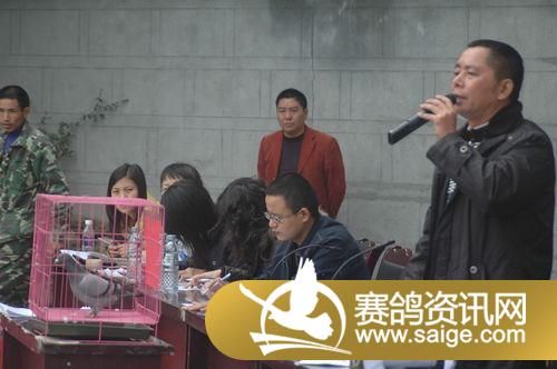 拍卖大会开始了,拍卖师由邛崃市鸽协李格先生主持