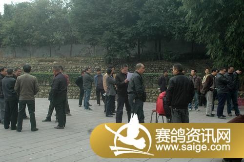 鸽友陆续来到拍卖场地,讨论交流自己喜爱的赛鸽