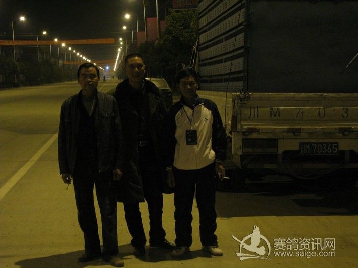 27日凌晨赛鸽车到达洋县下高速后,洋县铁路鸽会王会长和饲放人员合影