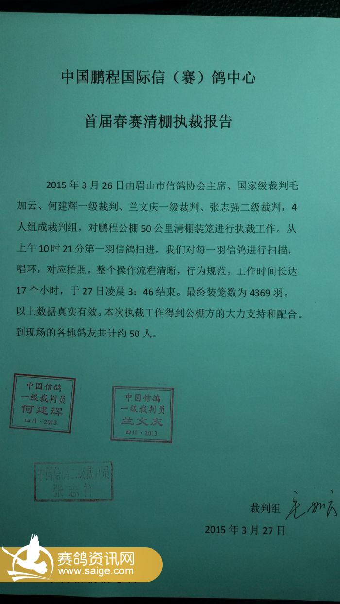 2015年3月26日裁判组清棚执裁报告