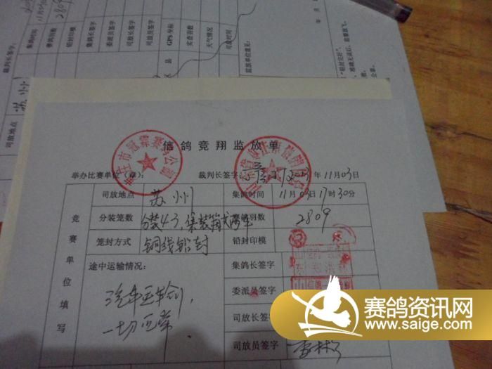 冠霖赛鸽公棚460公里决赛上笼清单(按顺序)