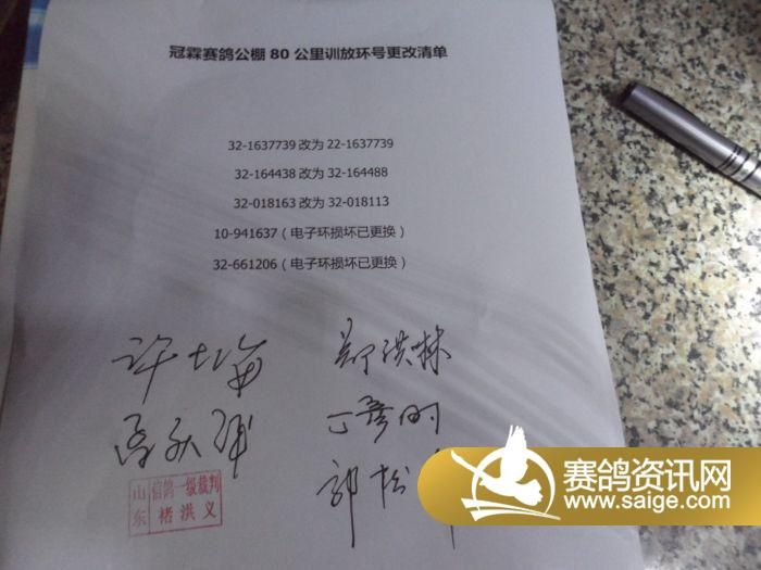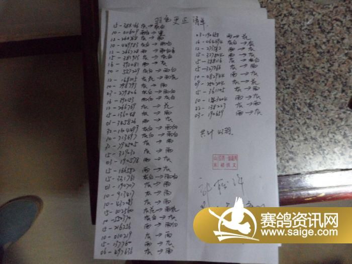 冠霖赛鸽公棚80公里收费站赛鸽信息更正清单