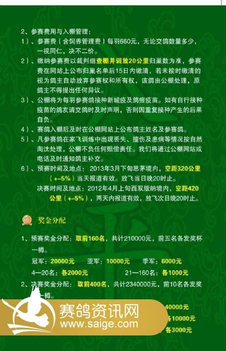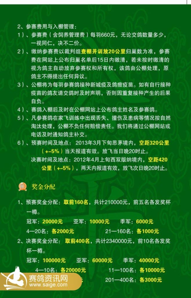 2013年第三届春赛268万元大奖赛规程